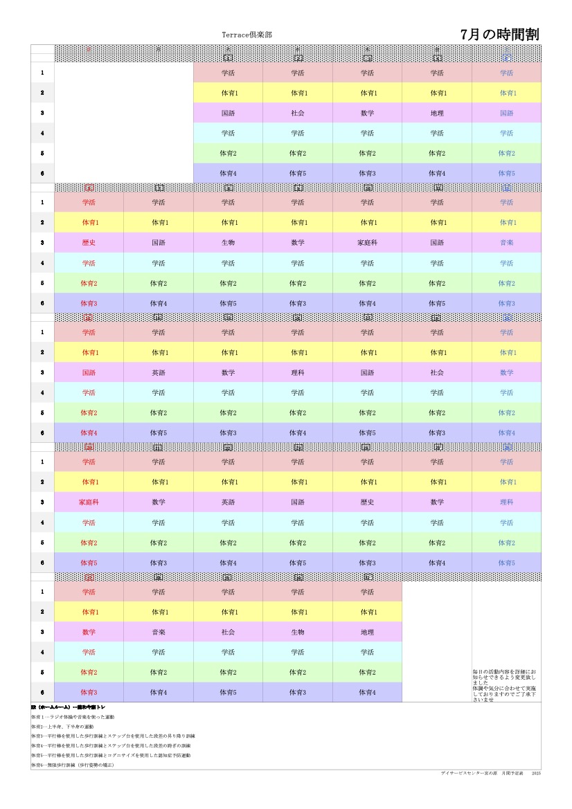 | 13:30〜 | レクリエーション・個別活動 |
